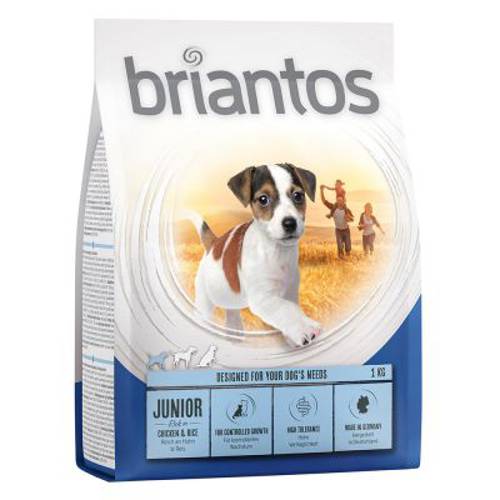 Karma Briantos Adult Junior Young & Fit jest pełnowartościową dla szczeniąt i psów wszystkich ras do 1. roku życia. Dobrze przyswajalna karma sucha Briantos Junior Young & Fit została stworzona przez doświadczonych specjalistów na podstawie aktualnego stanu wiedzy naukowej i zawiera wszystkie niezbędne witaminy, które zapewniają długie i zdrowe życie psa oraz odpowiednie odżywianie już od pierwszych dni psa! Dzięki specjalnej recepturze z lekkostrawnym kurczakiem, dobrze przyswajalnym ryżem, jak również odpowiednią zawartością tłuszczu i białka wspomaga optymalny rozwój. Karma zawiera odpowiednio wyselekcjonowane składniki i surowce, które zapewnią wysoką jakość karmy, a także jej świetny smak. Karma jakości premium zapewnia wysoką przyswajalność i akceptację, a kwasy tłuszczowe gwarantują zdrową sierść i skórę psa.
