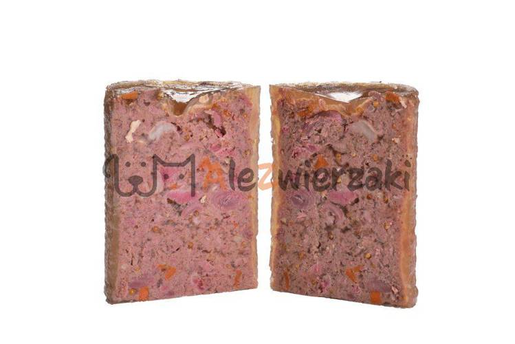 Skład: 66% kaczka, 14% bulion, 8% proso, 4,3% marchew, 2% jabłko, 2% minerały, 1% mieszanka ziół (rozmaryn, tymianek, nagietek lekarski, mniszek lekarski), 1% pietruszka, 1% olej z łososia, 0,5% siemię lniane, 0,2% algi i czarna porzeczka.