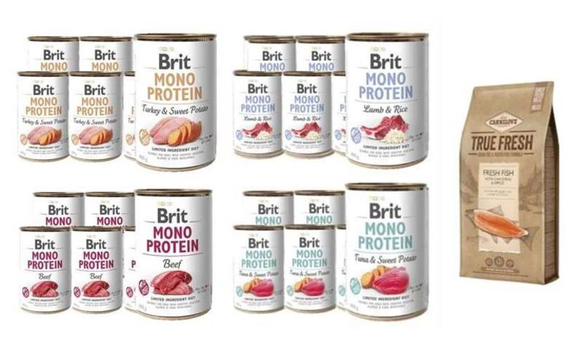 Brit Mono Protein MIX Smaków 24x 400g + GRATIS