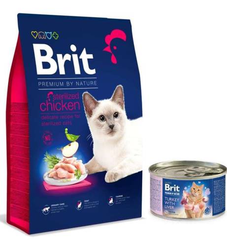 Brit Premium Cat Sterilized Chicken 800g+ Brit Premium Cat 200g (smak wybierany losowo) GRATIS Pełnoporcjowa karma dla kotów. Formuła z kurczakiem dla kotów dorosłych sterylizowanych. Karma została wzbogacona o sos z wątróbek drobiowych dodany w końcowej fazie przygotowywania. Całość została uzupe…