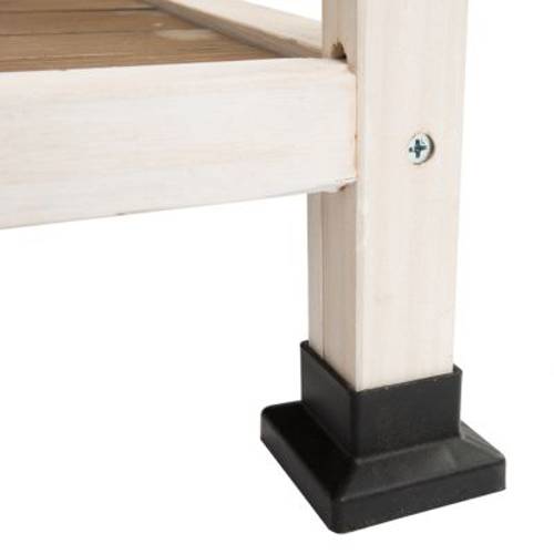 Artykuł został pokryty nieszkodliwym roztworem do pielęgnacji drewna na bazie wody. Roztwór zapewnia wstępną ochronę przed działaniem czynników atmosferycznych, ale jeśli artykuł ma być używany na zewnątrz, wówczas należy regularnie poddawać go dodatkowej pielęgnacji. Niepielęgnowane drewno wysycha, może pękać, wykrzywiać się lub po prostu nieestetycznie wyglądać. Dlatego regularnie gruntownie czyść i zabezpieczaj artykuł. Używaj do tego nieszkodliwych dla zwierząt produktów do pielęgnacji lub lazurowania drewna. Ustaw artykuł w możliwie najbardziej osłoniętym miejscu, aby ograniczyć jego zużycie spowodowane działaniem czynników atmosferycznych.