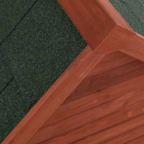 - Wodoszczelny dach: papa z gontu bitumicznego o wyglądzie cegły