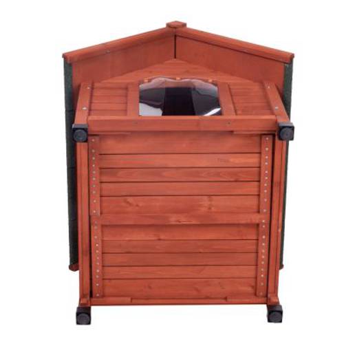 Bez odpowiedniej konserwacji drewno może ulec zniszczeniu przez zjawiska atmosferyczne. Jeśli buda znajduje się przez cały czas na zewnątrz, drewno należy regularnie pielęgnować specjalnie do tego celu przeznaczonymi, nieszkodliwymi dla zdrowia zwierząt środkami do pielęgnacji drewna. W przeciwnym razie, pomimo tego, że zostało zaimpregnowane, drewno może się nadmiernie wysuszyć, co doprowadzi do rozwarstwienia się i odłamywania części, wpływając niekorzystnie na wygląd budy. Zalecamy regularną pielęgnację budy, gdyż dzięki temu buda będzie przez długi czas wyglądała jak nowa. Jeśli jest to możliwe, ustaw budę w takim miejscu, by jak najlepiej uchronić drewno przed szkodliwym działaniem czynników atmosferycznych.