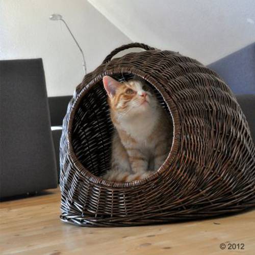 Budka - koszyk jest także idealna do transportu. Duża wilkinowa budka z zaplecionej wikliny oferuje dużo miejsca dla kotów dużych ras oraz małych psów.