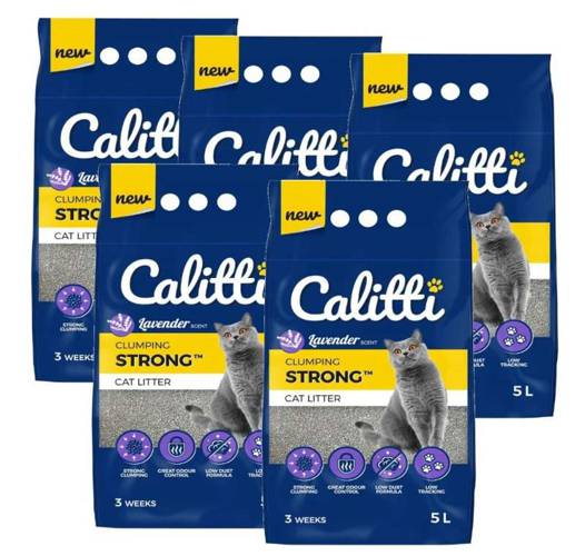 Calitti® STRONG™ Lavender to mocno zbrylający się żwirek dla kota o zapachu świeżej lawendy. Stworzony w 100% z naturalnego bentonitu, który bardzo dobrze wchłania płyny zapobiegając rozwojowi bakterii i powstawaniu brzydkich zapachów. Szybko zbryla się w mocne i łatwe do usunięcia bryłki, dzięki czemu utrzymanie czystości będzie niezwykle łatwe. Drobne ziarenka są delikatne dla kocich łapek i nie przyklejają się do nich.