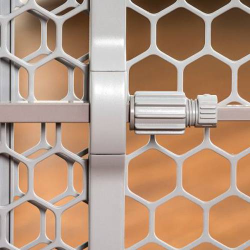 Ogrodzenie dla psów jest odpowiednie dla małych i średnich ras, jak również dla innych małych zwierząt i ma optymalną wysokość, aby odgrodzić Twojego pupila, zostawiając odpowiednio dużo miejsca dla człowieka. Mocowanie bez wiercenia jest nieskomplikowane dzięki specjalnemu śrubowemu złączu dociskowemu, które mocno zaciska kratkę między ościeżnicami drzwi lub ścianami. Odboje gumowe zapobiegają powstawaniu punktów nacisku, dzięki czemu nie pozostają żadne ślady. Barierka dla psów wykonana jest z mocnego, wytrzymałego tworzywa sztucznego i idealnie nadaje się do codziennego użytku. Barierkę możesz złożyć, aby zaoszczędzić miejsce do przechowywania lub podczas podróży i łatwo ją transportować.