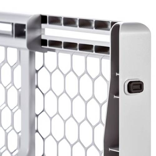 Wysuwana barierka z tworzywa sztucznego, wytrzymała i lekka, dla małych i średnich psów, łatwe mocowanie, specjalne dociskowe połączenie śrubowe, do blokowania przejść o szerokości do 107 cm