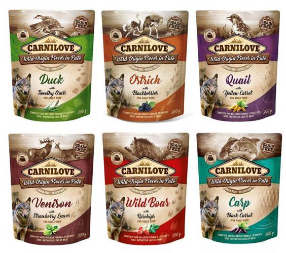 Carnilove Dog Pouch Wild Boar&Rosehips.Mix smaków 6x300g