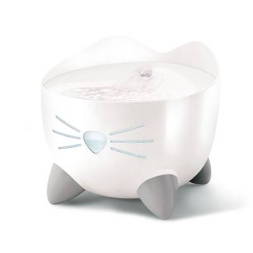 Biała fontanna w kształcie uroczego kota, pojemność 2,5 l, 3-krotnie skuteczniejszy filtr, 3 opcje przepływu wody, subtelna lampka nocna, cicha praca, wymiary: dł. x szer. x wys.: 20,5 x 20,5 x 17 cm Już na pierwszy rzut oka widać, dla kogo przeznaczone jest to poidełko: Catit PIXI poidełko fontan…