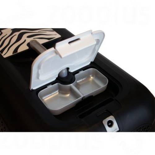 Poza swoim oryginalnym designem Transporter Catit White Tiger Voyageur przekonuje solidnym wykonaniem i praktycznym wyposażeniem jak zamek zabezpieczający przy drzwiach z kratki, otwór do głaskania i otwory wentylujące, które zapewniają optymalną cyrkulację powietrza. Miski na wodę i karmę przymocowane do drzwiczek ułatwią dostarczenie pożywienia w trakcie podróży.Aby przetransportować zwierzaka konieczny jest transporter. Powinien on być pewnie i solidnie zbudowany oraz oferować pupilowi możliwie duży komfort. Transporter Catit White Tiger Voyageur w kolorze czarnym spełnia wszystkie te kryteria. Gdyby zwierzę stało się nerwowe, można je uspokoić głaszcząc przez otwór który znajduje się na wieku. Dodatkowo, przy wieku znajduje się pojemnik na wodę i karmę, które są w zestawie i można je łatwo przymocować i zdjąć przy pomocy klipsa.