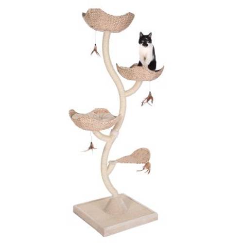 Niepowtarzalny drapak w kształcie kwiatu wykonany z naturalnych materiałów jest nie tylko piękny, ale też bardzo stabilny. Przyczyniają się do tego grube metalowe słupki owinięte naturalnym sizalem, które tworzą konstrukcję drapaka Cat´s Flower XXL. Ten wysoki na 1,83 m drapak z 3 poduszkami świetnie nadaje się dla większej liczby kotów oraz zapewnia wiele powierzchni do drapania i zabawy.Ten starannie wykonany drapak zawdzięcza swój wyjątkowy wygląd naturalnym elementom takim jak legowiska plecione z hiacynta wodnego oraz sizal. Pierwszy poziom w kształcie liścia ułatwia wejście na kolejne piętra, które z kolei mają kształ kwiatów i służą jako legowiska. Znajdują się tam miękkie poduszki, które zachęcają do wypoczynku. W razie zabrudzenia poduszki można prać ręcznie w temperaturze do 30°C.