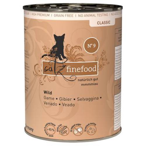 Witalność i zdrowie kota zależy zasadniczo od jedzenia, którym się żywi. Produkty catz finefood to dopasowane do potrzeb, zbilansowane i naturalne karmy dla kotów. Poszczególne receptury są wzorowane na naturalnym pożywieniu, dlatego zawierają najważniejsze substancje odżywcze i białka, które sama natura przewidziała dla kotów. Z tego powodu karma jest wolna od zbóż, będących ciężkostrawnym i nieprzyswajalnym składnikiem w kociej diecie.W karmie znajdują się wyłącznie najwyższej jakości mięso i wnętrzności z niemieckich gospodarstw rolnych oraz ryba z wolnych i zrównoważonych połowów. Cenne, świeże składniki po szczegółowym sprawdzeniu i kontroli weterynaryjnej wejdą w skład catz finefood. Zapewnia to maksymalna kontrola jakości i bezpieczeństwa. Podczas starannego gotowania na parze wszystkie substancje odżywcze oraz cenne kwasy tłuszczowe zostają niemal całkowicie zachowane. Produkcja karmy: wyłącznie w Niemczech.