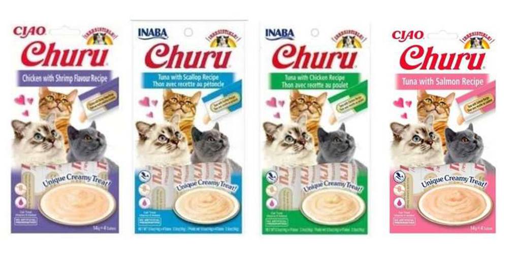 Unikalne kremowe smakołyki Churu dla kotów prosto z Japonii. Churu są niskokaloryczne, nie zawierają zbóż i konserwantów, są produkowane z mięsa pochodzącego od kurczaków z wolnego wybiegu, naturalnie hodowanych na ściśle nadzorowanych fermach oraz z tuńczyka dalekomorskiego odławianego w sposób zrównoważony i certyfikowany i bezpieczny dla delfinów.