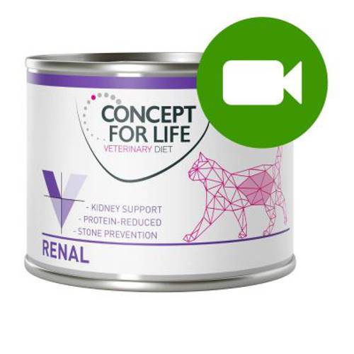 Concept for Life Veterinary Diet Renal to specjalnie opracowana dietetyczna pełnoporcjowa karma klasy high premium dla dorosłych kotów, optymalnie dopasowana do potrzeb żywieniowych kotów cierpiących na niewydolność nerek i z powodu kamieni szczawianowych i moczanowych.