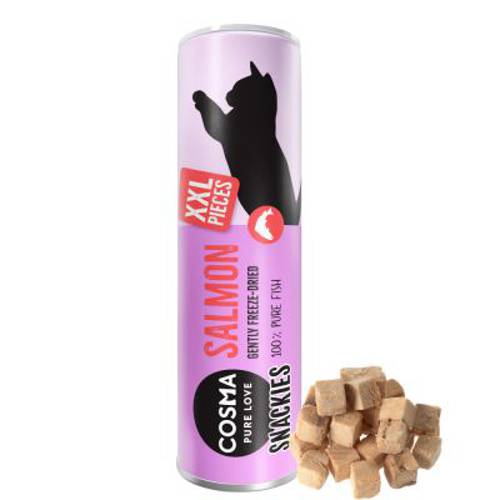 Suszone metodą mrożenia przysmaki Cosma Original Snackies XXL, składające się w 100% z mięsa albo ryby, są polecane przez lekarzy weterynarii oraz hodowców kotów, ponieważ są zdrowym smakołykiem, a dzięki naturalnemu smakowi cieszą się wyjątkowo wysoką akceptacją.
