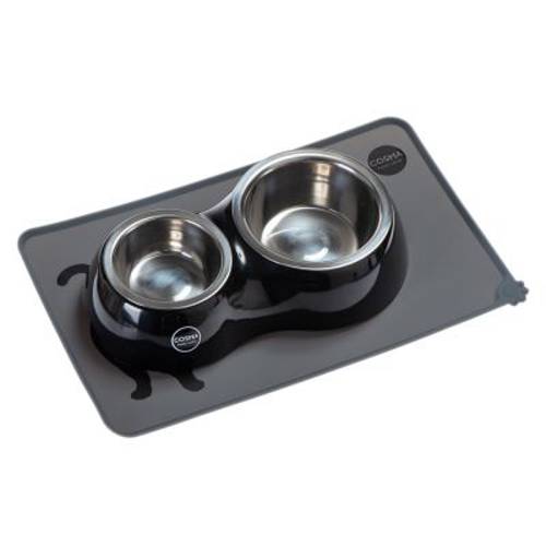 Podstawka pod miski została wykonana z higienicznej melaminy i zapewnia miejsce na dwie miski o różnej wielkości. Zestaw zawiera dwa wkłady ze stali nierdzewnej, które można wyjąć, łatwo napełnić i wyczyścić. Materiały, z których została wykonana miska, są w 100% neutralne pod względem smaku, trwałe i odporne na zadrapania i działanie ekstremalnych temperatur. Praktyczne wgłębienia ułatwiające chwytanie i antypoślizgowe gumowe stopki stanowią dopełnienie wyposażenia. Poza tym stylowe wzornictwo w modnym czarnym kolorze czyni z tej miski marki Cosma piękną atrakcję przyciągającą wzrok, która świetnie pasuje do nowoczesnego wystroju wnętrza.