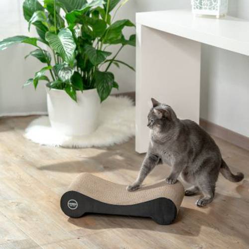 Ten poziomy drapak – podobnie jak wszystkie produkty z tej serii marki Cosma – przekonuje nowoczesną, ponadczasową elegancją. Drapak jest utrzymany w dyskretnych kolorach, boki – w błyszczącym czarnym kolorze z dodatkowym logo marki Cosma.