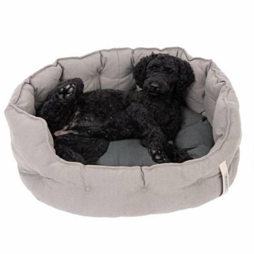 Czas na przerwę! Zwiń się wygodnie i pozwól, by świat na te kilka minut pozostał na zewnątrz – taki zabieg nie przysporzy żadnego problemu, jeśli Twój czworonożny przyjaciel ma tak wygodne łóżko jak legowisko dla psa Cosy ecoLIFE. Legowisko ma wyjątkowo wysoką krawędź, które daje poczucie bezpieczeństwa. Miękko wyściełana, pikowana poduszka podwyższa komfort leżenia.Dzięki nowoczesnemu, płóciennemu wyglądowi w ponadczasowej szarości, owalne legowisko dla psa harmonijnie komponuje się z każdym stylem umeblowania. Tkanina obiciowa wykonana jest z przędzy pochodzącej z recyklingu – bonus dla każdego, kto dba o środowisko. Poduszkę i legowisko można w razie potrzeby zdjąć i wyprać w pralce. Ogólne zabrudzenia, takie jak sierść czy okruszki, wystarczy zetrzeć z lekko chropowatej powierzchni tekstylnej.