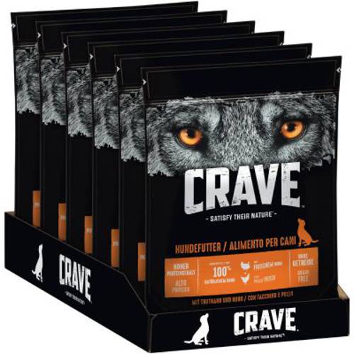 Wysoką zawartością składników zwierzęcych (min. 60%) oraz dużą ilością białka (36%) pochodzącą ze źródeł zwierzęcych i roślinnych, karma Crave odpowiada naturalnym nawykom żywieniowym Twojego pupila i jego przodków. Białko jest kluczowym elementem pełnowartościowego żywienia. Jest ono potrzebne do zbudowania oraz utrzymania silnej masy mięśniowej. Składniki, które są ciężko przyswajalne lub mogą powodować niepożądane skutki takie jak pszenica, kukurydza, soja i produkty mleczne nie są wykorzystywane w procesie produkcji karmy Crave. Z tego powodu pokarm nadaje się również do podania zwierzętom cierpiącym na alergie i nietolerancje. Wyśmienity smak sprawia, że karma cieszy się bardzo wysoką akceptacją. Producent zaleca podawanie mieszanki składającej się z karmy mokrej i suchej w celu dostarczenia psu optymalnej ilości składników odżywczych. Pokarm pakowany jest w wygodne opakowania z możliwością ponownego zamknięcia, które chronią ich zawartość przed czynnikami zewnętrznymi takimi jak powietrze czy wilgoć.