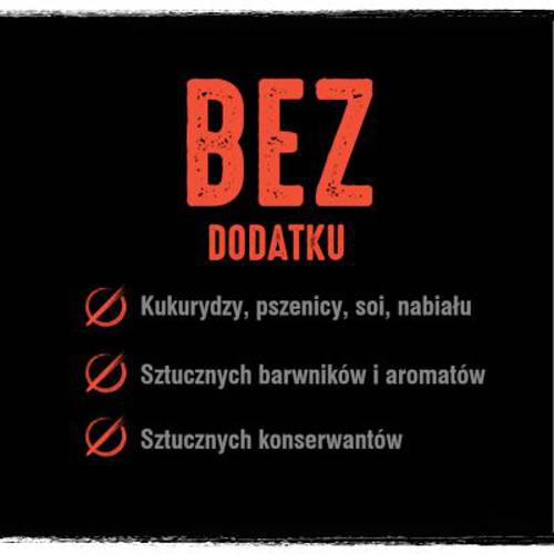 - Duża ilość mięsa: 65% składników pochodzenia zwierzęcego.