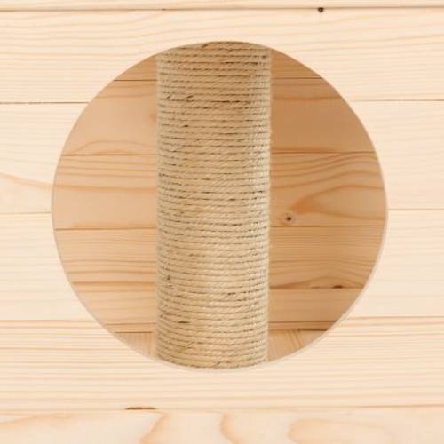 W szczególności kotom niewychodzącym należy zapewnić odpowiednią dawkę zabawy i wspinaczki oraz miejsce do drapania w mieszkaniu. Prezentowany domek dla kota Cubist to doskonałe rozwiązanie. Stabilna drewniana konstrukcja zmieści się w niemal każdym kącie, zapewniając Twojemu kotu możliwość zabawy na czterech poziomach.Ta trzypiętrowa wieża dla kota jest stabilna i wytrzymała: jest w stanie wytrzymać nawet najdziksze zabawy. Na samej górze znajduje się wygodna platforma widokowa, z której Twój pupil może obserwować otoczenie. Domek wykonany z odpornego na zniekształcenia materiału świetnie nadaje się jako kryjówka lub miejsce do odpoczynku. Przez otwór w dachu Twój kot może przedostać się na wyższy poziom. Oprócz tego na dwóch piętrach znajdują się słupki do drapania owinięte naturalnym sizalem, na których Twój ulubieniec może ostrzyć pazury. Wysoki komfort leżenia zapewniają zawarte w komplecie poduszki wypełnione tworzywem piankowym.