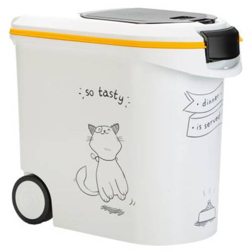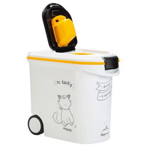 Ten praktyczny pojemnik to doskonałe rozwiązanie do przechowywania pyszności dla Twojego łasucha, sprawiający, że chrupka i świeża karma jest zawsze pod ręką. Dzięki dużej pojemności pojemnik doskonale sprawdzi się w gospodarstwach zamieszkiwanych przez kilka kotów.Gumowa uszczelka pomiędzy pokrywą a pojemnikiem zapewnia hermetyczne zamknięcie. W ten sposób karma sucha nie traci swoich walorów smakowych ani aromatu. Precyzyjne dozowanie umożliwia z kolei osobny otwór w pokrywie.
