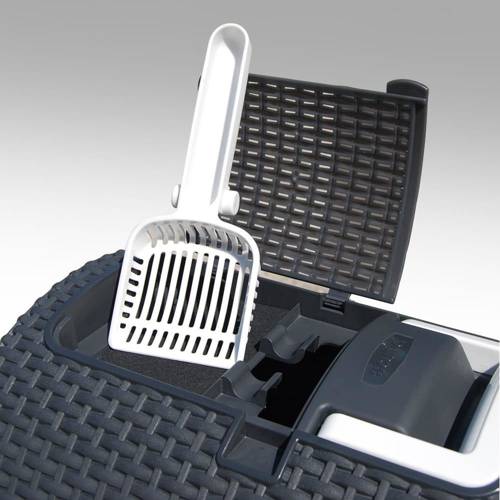 Utrzymywanie czystości wokół Waszych pupili od dziś może stać się samą przyjemnością. Znając potrzeby kotów i wysokie oczekiwania ich właścicieli proponujemy toaletę idealną, która jest nie tylko estetyczna, ale przede wszystkim bardzo praktyczna. Została wykonana z przypominającego rattan materiału, który świetnie się prezentuje i co najważniejsze - czyści. Kuweta została wyposażona w wysuwaną szufladę oraz schowek na akcesoria . Posiada szczelne zatrzaski ograniczające wysypywanie się żwirku oraz filtr przeciw zapachowy, który podnosi komfort jej użytkowania, zaś wygodny uchwyt ułatwi Wam jej przenoszenie.