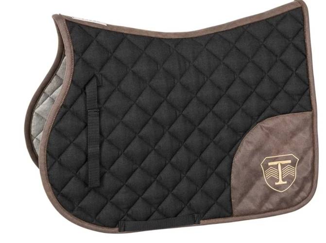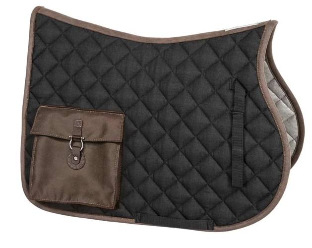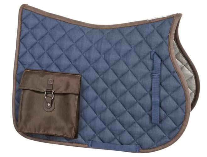 Charakteryzuje się oryginalnymi wykończeniami z materiału imitującego skórę. Na prawej stronie znajduje się kieszonka z zapięciem w kształcie podkowy. Czaprak wykonany został z pikowanej tkaniny typu jeans, podszytej włókniną Evolon® o właściwościach chłonnych, oddychających i osuszających.