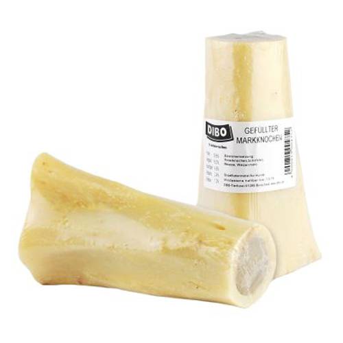 Dibo, faszerowane kości szpikowe są podwójnie korzystne dla Twojego psa. Z jednej strony zapewniają mu długą przyjemność żucia, a po drugie są zdrowe. Kości wołowe zawierają dużą ilość wapnia, które wspomaga mechaniczne oczyszczanie zębów, a przy tym wzmacnia zgryz. Smakowity farsz, którym zostały wypełnione kości dodatkowo zachęca do gryzienia. Dibo, faszerowane kości szpikowe mogą być bez obaw podawane w międzyczasie i za każdym razem sprawia twojemu ulubieńcowi wyjątkową radość. Przysmaki wyprodukowano w Niemczech, jest to produkt naturalny, bez dodatków. Staranny proces suszenia na zimno sprawia, że przysmak jest idealny dla alergików i psów cierpiących na wrażliwość pokarmową.Dibo, faszerowane kości szpikowe, w skrócie: