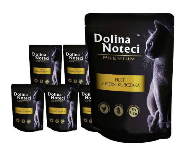 Dolina Noteci Premium filet z piersi kurczaka 10x85g Warto rozpieszczać pupila każdego dnia, podając mu smakowitą karmę. Aby dbać o jego zdrowie należy podać produkt, który zaspokoi jego specyficzne wymagania żywieniowe i preferencje smakowe. Zastosowanie w karmie mięsa z piersi kurczaka wzbogaca p…