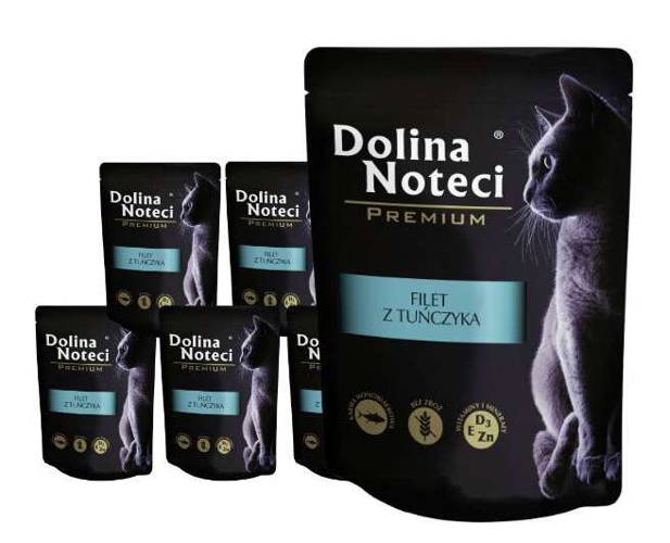 Dolina Noteci Premium filet z tuńczyk 10x85g Aby w pełni zaspokoić specyficzne wymagania żywieniowe i preferencje smakowe należy urozmaicać kotu posiłki. Zastosowane w produkcji karmy mięso z tuńczyka czyni produkt bogatym w białko o wysokiej strawności i jakości biologicznej oraz w wartościowe ami…