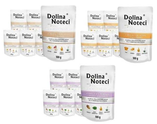 ZESTAW ZAWIERA: Dolina Noteci Premium Bażant z dynią i makaronem 100g x10 Dolina Noteci Premium Gęś z jabłkiem 100g x10 Dolina Noteci Premium Królik z brązowym ryżem 100g x10 Aby Twój pies czuł się dobrze i miał zdrową sierść warto zadbać o jego odpowiednią dietę. Delikatne mięso bażanta z pewnoś…