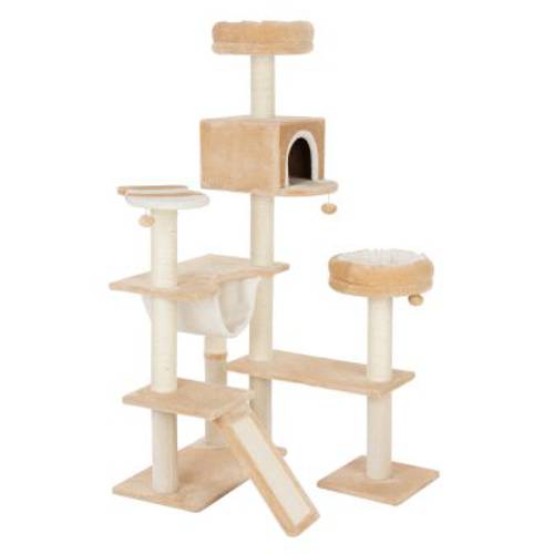 Duży drapak z kładką do wchodzenia, maty sizalowe, domek do spania, hamak, dwa legowiska, wysoki punkt widokowy, bardzo stabilny, różne opcje rozbudowy. Wymiary, wys. x dł. x szer.: 165 x 86 x 98 cm