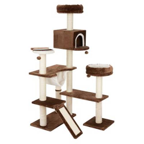 Duży drapak dla kota - Domek z piernika zapewni wszystko, czego Twój kot może potrzebować do szczęśliwego życia w mieszkaniu!Praktyczne kładka tworzy most między podłogą a pierwszą platformą, który pozwoli także starszym kotom oraz kociętom wspiąć się na drapak. Wyściełana jest ona sizalem, który stanowi doskonałą powierzchnię do drapania. Dwie, połączone ze sobą platformy podłogowe stanowią pewne miejsce zarówno do szalonych polowań, jak i długich, przytulnych godzin wylegiwania się. Liczne platformy do leżenia zapraszają do drzemki i leniuchowania. Głównie hamak może stać się ulubionym miejscem do spania dla Twojego pupila. Przytulna jaskinia będzie idealna, jeśli Twój kot zażyczy sobie nieco prywatności, a jednocześnie będzie mógł obserwować ze środka jaskini otoczenie. Na najwyższej platformie, otoczonej przytulną krawędzią, kot będzie się czuł pewnie i spokojnie.