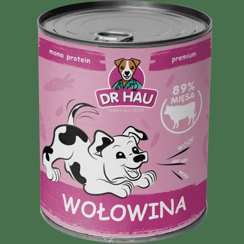 Monobiałkowa karma mokra DR HAU to pyszna karma jakości premium, na bazie wołowiny dla psów w każdym wieku. Mięso wołowe jest bogate w kreatynę i L-karnitynę, zawiera także kwas linolowy i alaninę, które podtrzymują masę mięśniową. Jest też świetnym źródłem żelaza i witamin z grupy B, A oraz E.
