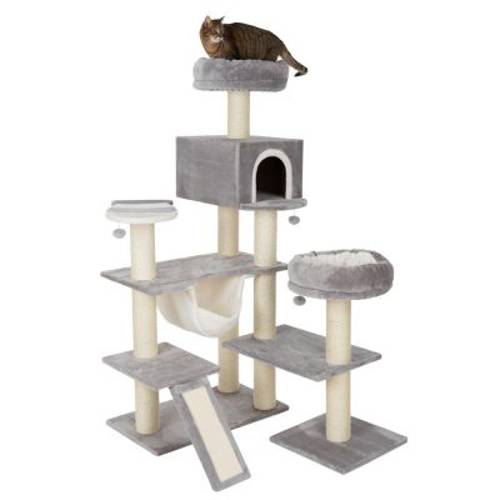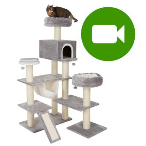 Duży drapak z przestronną budką, hamakiem, dwoma przytulnymi łóżkami i platformami, kładka do wspinaniu się na drapak. Idealny do domów z większą ilością kotów. Wys. x dł. x szer.: 175 x 100 x 118 cm