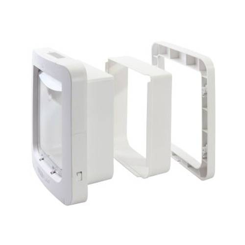 - Zawartość przesyłki: duże drzwiczki dla kota SureFlap z czytnikiem mikrochipów, 1 zawieszka do obroży RFID, wkręty o 3 różnych długościach, instrukcja.