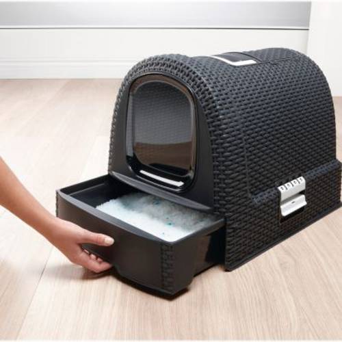 - Kryta, przyjazna dla środowiska kuweta z wbudowaną szufladą na żwirek.