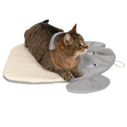 Mata do drapania dla kotów, uroczy słoń z szeleszczącą folią, dzwoneczkiem i częścią do przytulania i spania, do położenia lub zawieszenia, do pielęgnacji pazurów. Dł. x szer. x wys.: 50 x 38 x 2 cm