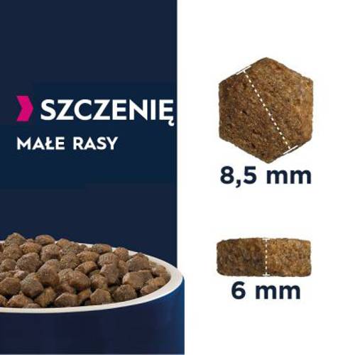 - Dopasowana karma sucha dla szczeniąt małych ras w wieku od 1 do 12 miesiąca życia.