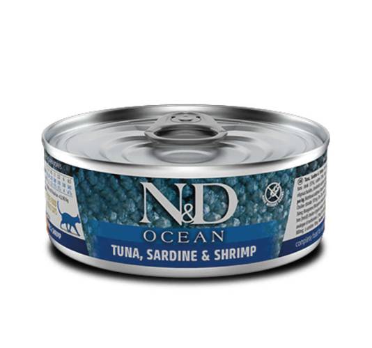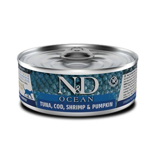 2x Farmina N&D Kot Ocean Tuńczyk, Kalmar i Krewetka 80g