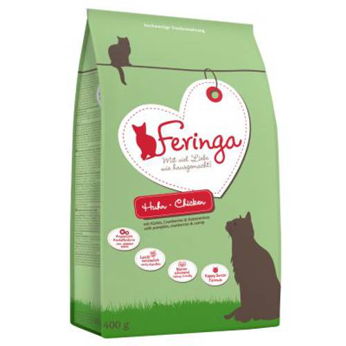 Sucha karma Feringa dla kotów seniorów jest specjalnie dostosowana do potrzeb starszych kotów. Zrównoważona receptura z wartościowych i wyjątkowo dobrze przyswajalnych składników przyczynia się do dobrego samopoczucia Twojego starszego ulubieńca. Formuła Happy Senior z odpowiednio dopasowanym kształtem krokietów nie tylko chroni nerki, ale jest również lekkostrawna i idealnie nadaje się dla kotów od 7 roku życia. Starannie wybrane mięso z kurczaka, doprawione dynią, żurawiną i szczyptą kocimiętki, smakuje tak wyśmienicie, jak przygotowane w domu!