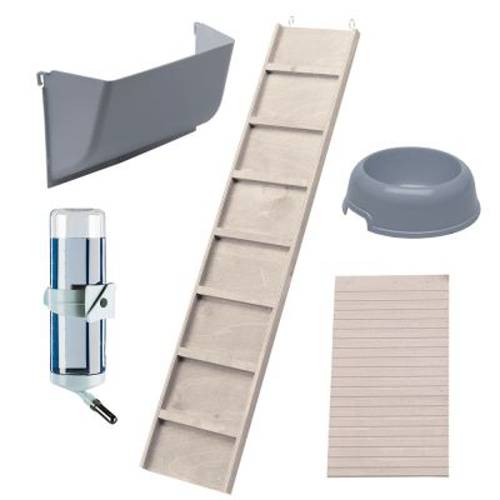 Ta drewniana klatka do wnętrza domu przekonuje nie tylko przez elegancki wzór, ale także przez funkcjonalność. Króliki i świnki morskie mogą sobie biegać przez dwa piętra klatki, a potem ułożyć się do spania w specjalnie do tego przygotowanym oddzielnym miejscu. Spód na pierwszym piętrze ma szczególnie wysoki brzeg tak, że zwierzaki mogą bez problemu trochę poszaleć bez brudzenia Twojego domu. Dach jest otwierany. Na parterze znajduje się przesuwana kratka do komfortowego wchodzenia i wychodzenia z klatki, a także do jej czyszczenia. Dodatkowo spód na parterze jest z plastiku, który jest łatwy w czyszczeniu i można go wyciągnąć. Oddzielny domek do spania ma także otwierany dach.Dzięki białemu kolorowi klatka Cottage z Ferplast pasuje do każdego mieszkania, a jej piękne ozdoby naprawdę przyciągają wzrok.