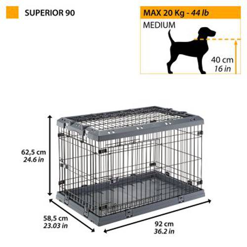 Klatka do transportu psa Superior marki Ferplast sprawdzi się w wielu znanych Ci sytuacjach związanych z czworonogiem: podczas szkolenia szczenięcia w domu, w zapewnieniu bezpiecznej przestrzeni w środowisku domowym czy w trakcie transportu zwierzęcia w bagażniku samochodu. W razie potrzeby wewnątrz klatki można umieścić dołączoną przegrodę.