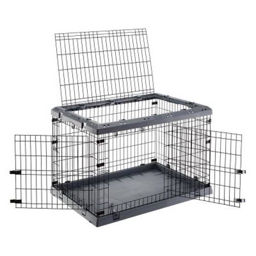 Klatka dla psa do domu lub na podróż, stabilna i wytrzymała, podwójne zamknięcie, otwierany dach, odpływ zapewniający suchą podłogę, łatwa do złożenia i transportu, z metalu i tworzywa sztucznego