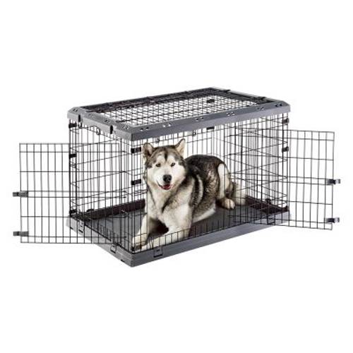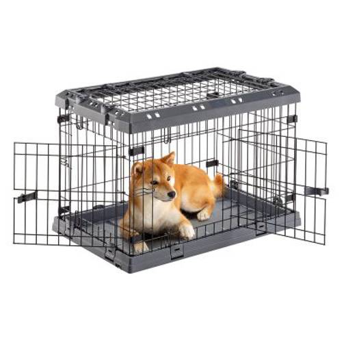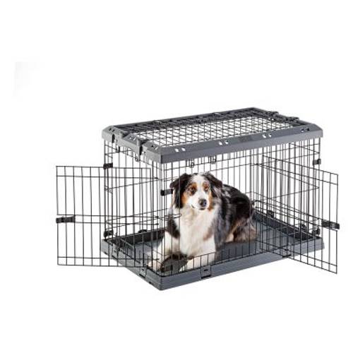 Klatka dla psa do domu lub na podróż, stabilna i wytrzymała, podwójne zamknięcie, otwierany dach, odpływ zapewniający suchą podłogę, łatwa do złożenia i transportu, z metalu i tworzywa sztucznego