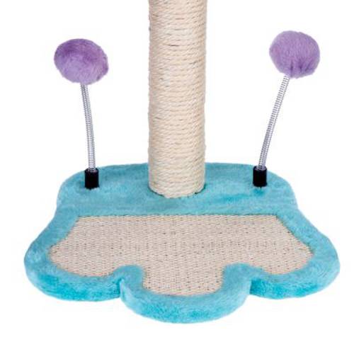 Śliczny słupek do drapania, 4 ruchome zabawki z dzwoneczkami, z deską do drapania i małą platformą, do ostrzenia pazurków i do zabawy, idealny dla kociąt, wymiary dł. x szer. x wys.: 30 x 30 x 33 cm Marzenie każdego małego kotka – słupek do drapania Finny, o ślicznym wzornictwie, w niebiesko-różow…