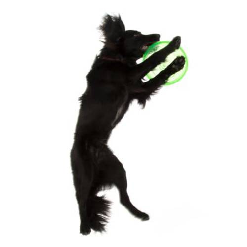 Frisbee dla psów do rzucania, łapania i aportowania, leci daleko i wysoko bez dużego nakładu sił, wytrzymałe i elastyczne, unosi się na wodzie, łatwe do czyszczenia, wykonane z gumy termoplastycznej