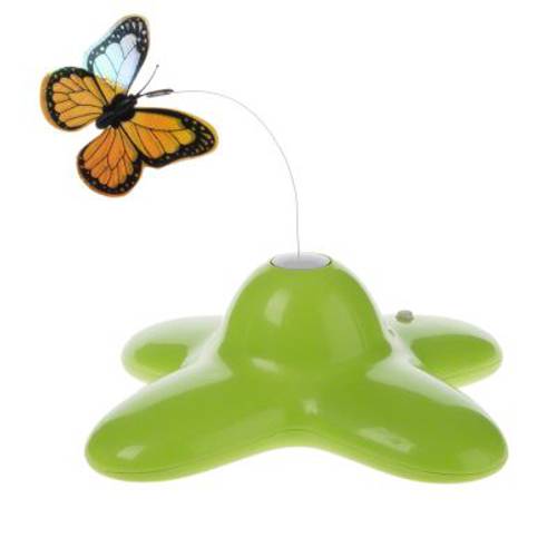 Zabawka dla kota Funny Butterfly zaskoczy twojego kota swoimi nieprzewidywalnymi ruchami i szalonym trzepotaniem, a przy tym zapewni mnóstwo radości. Wystarczy włączyć przycisk by motyl zaczął trzepotać skrzydłami i poruszać się dookoła.Cienki drut, do którego przymocowany jest motylek jest zasilany na baterie i delikatnie porusza ruchami zabawki by jak najdokładniej imitowała ruchy prawdziwego motyla. Zabawka w naturalny sposób pobudza instynkt łowcy u Twojego kota i zachęca go do łapania motyla. Zielona podstawa jest szeroka i ciężka, nie przesuwa się nawet na skutek wyjątkowo agresywnych ataków na motyla.