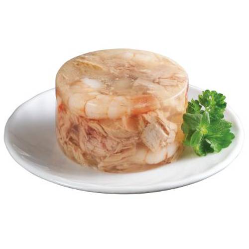 Karma uzupełniająca dla kota, bogata w białko, tylko 0,5-1% tłuszczu, pyszne i miękkie kawałeczki mięsa w delikatnej galarecie, wysokiej jakości składniki, nie zawiera cukru, barwników i konserwantów